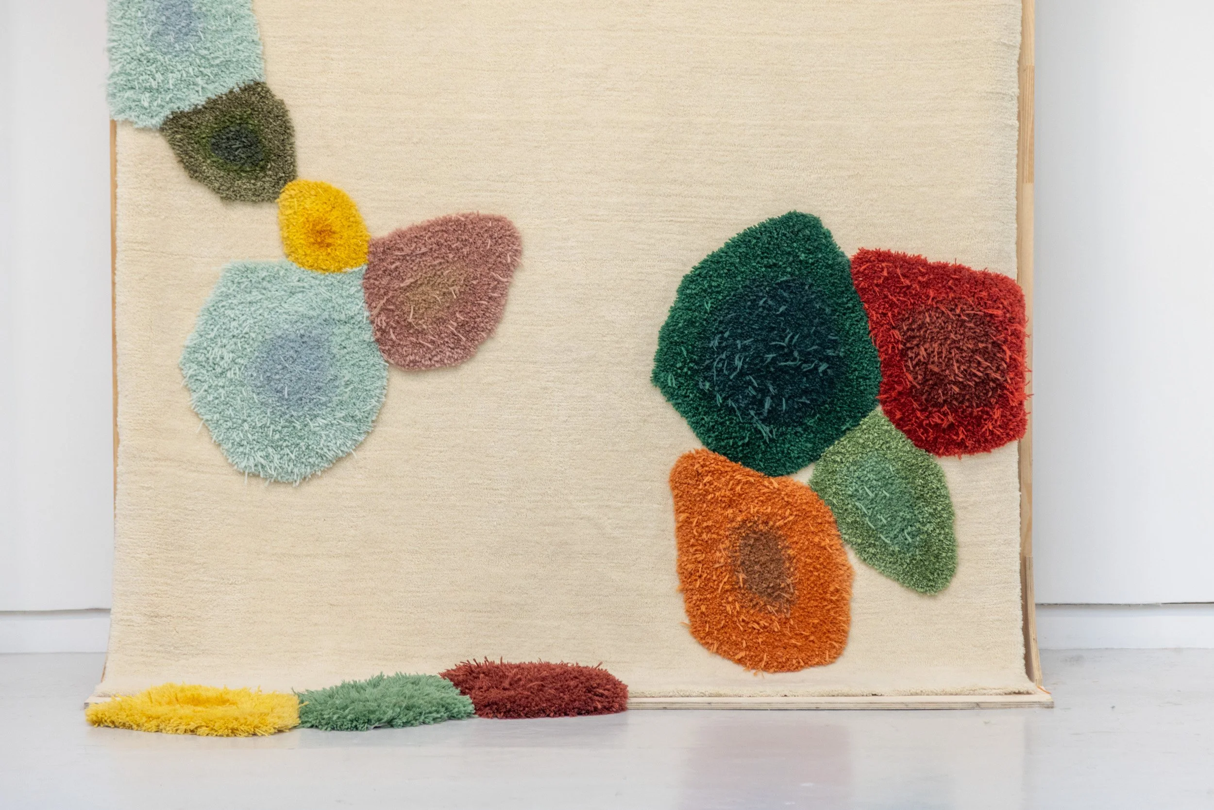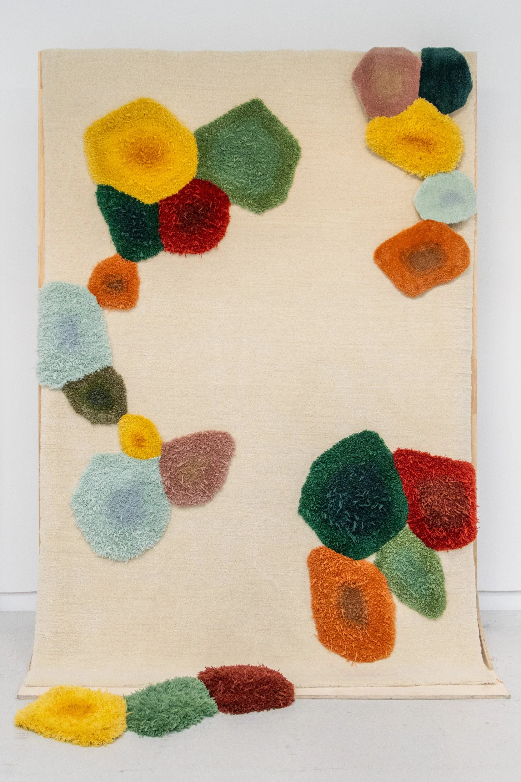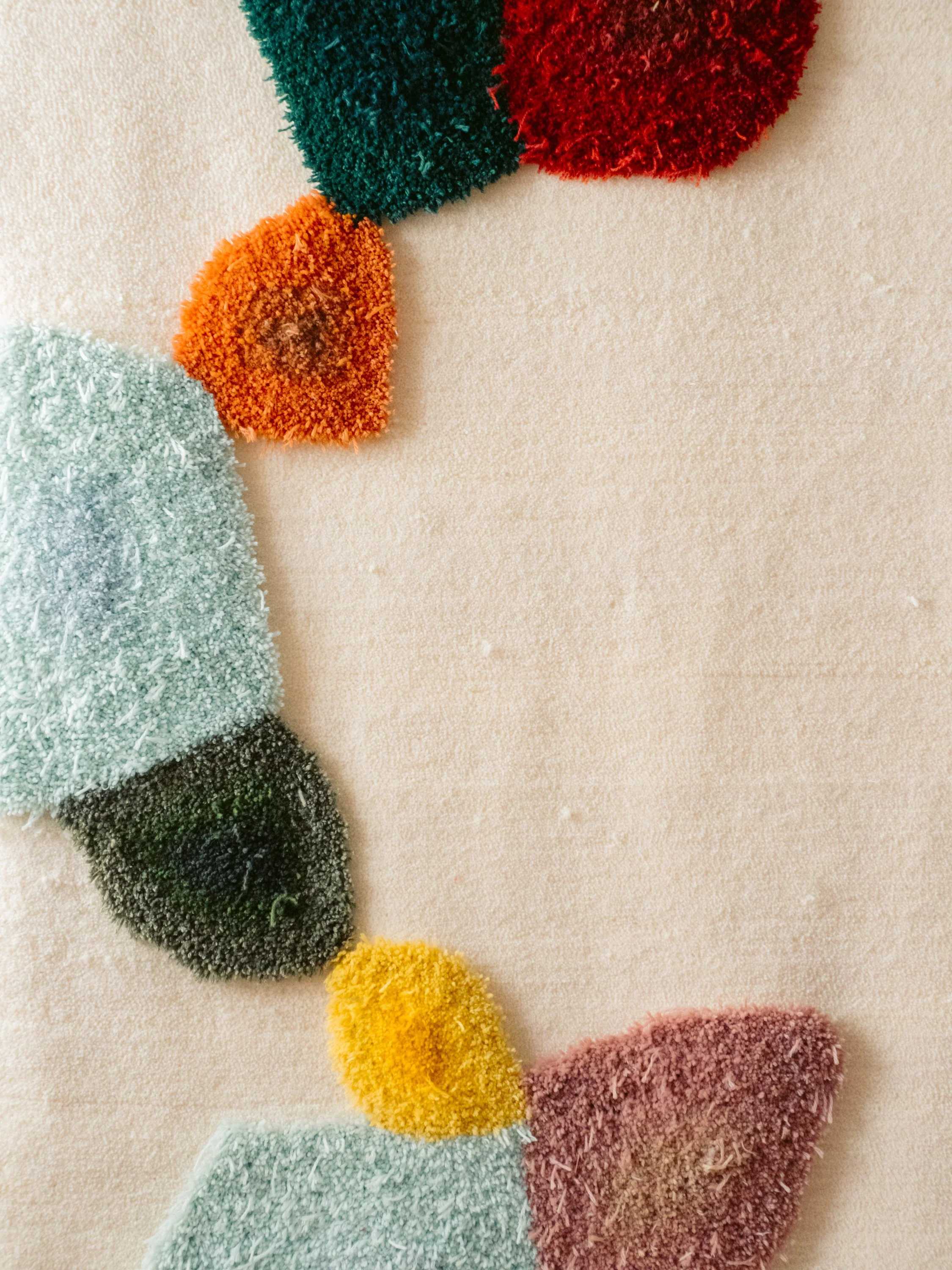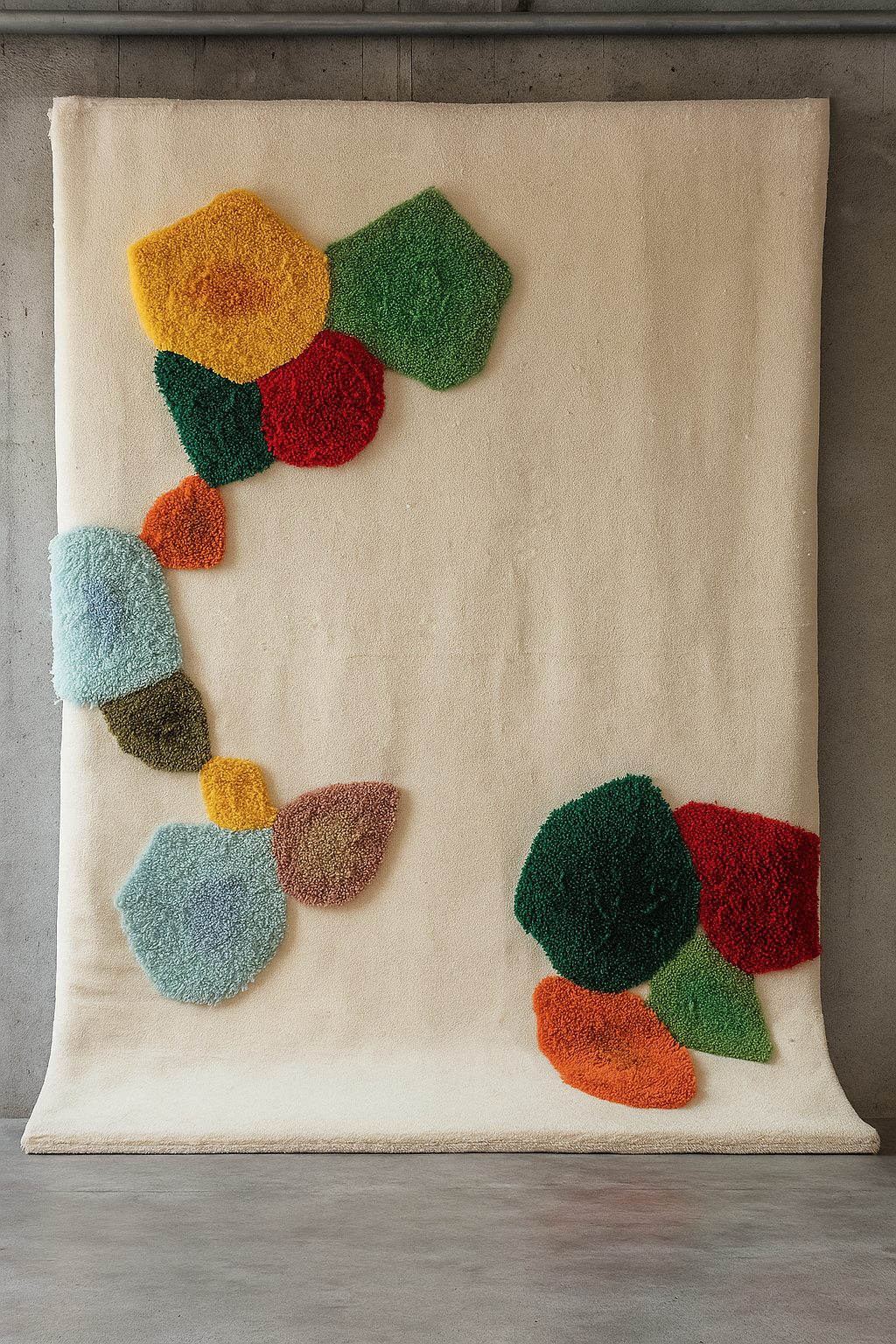 A large-scale composition built from linked color “nodes” that translate a century-old Slovenian embroidery motif into a contemporary surface. Gradients and pile heights shift to mark joints, pauses and passages—mapping continuity across generations.